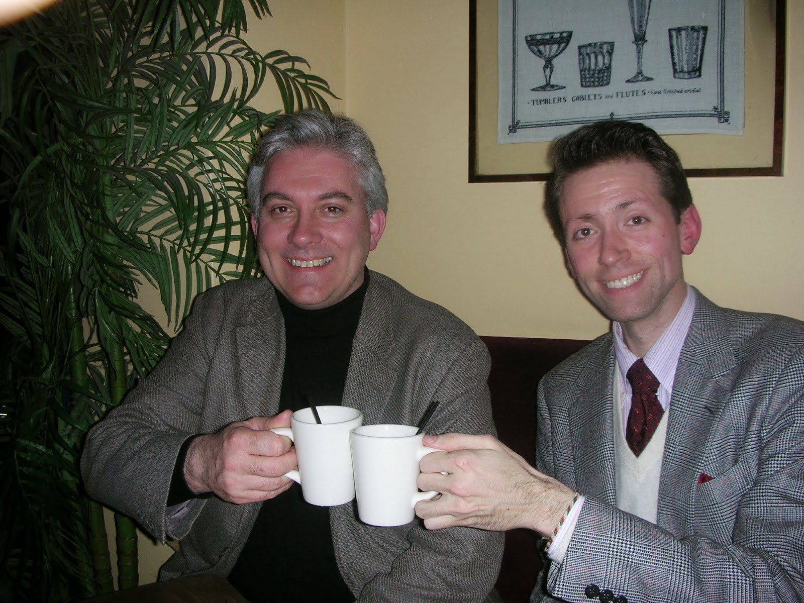 manager, whom I recently befriended. That man's name was Dennis. He and his "life partner" came to dinner at my home (seen below). Dennis admitted that he never visited the homes of his employees, but we bonded (through my sparkling personality) via phone calls and visits I made to his store. Both men liked my humor, openness, and hospitality. They couldn't believe that I didn't have a boyfriend yet. They loved my garden and interior design skills. (Incidentally, if folks visited my house and couldn't figure out that I was gay, they were clueless). I wowed them when I moved our meal outdoors, so they could sit under a canopy of Japanese pine trees, surrounded by flowerbeds, and illuminated by "fairy lights" and candles. Their eyes darted everywhere with admiration, and they adored my blend of music. Dennis told me that he had not enjoyed himself so much for a long time! I was looking forward to finally having some gay friends. They were a fun, clean-cut, fabulous, and successful couple.