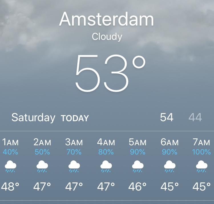 February 22, even Amsterdam at night is warmer than NYC in the daytime!