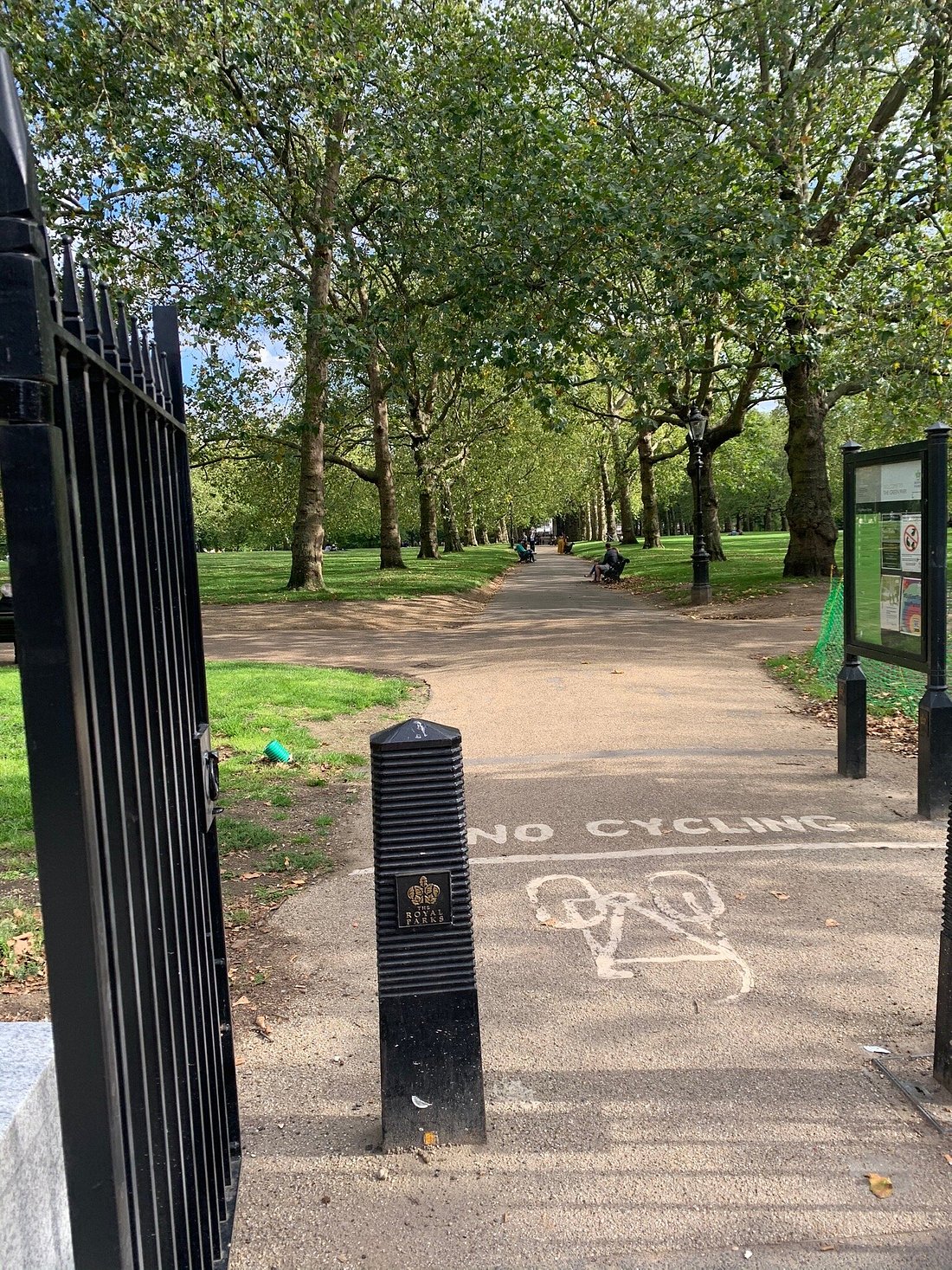 It is located at the north end of Green Park, which is a 40-acre royal that is full of natural plantings. Seen below, the Royal Cypher is on the bollards that keep vehicles out of the park.