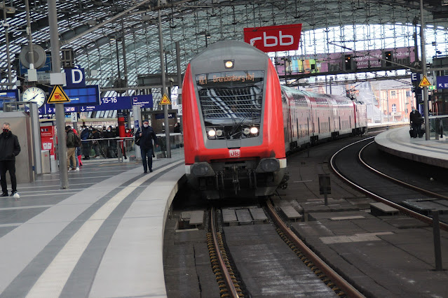 The arriving train was not a Regional one and wasn't going to Berlin. However, we took it east to the station where we arrived at Sansoucci.