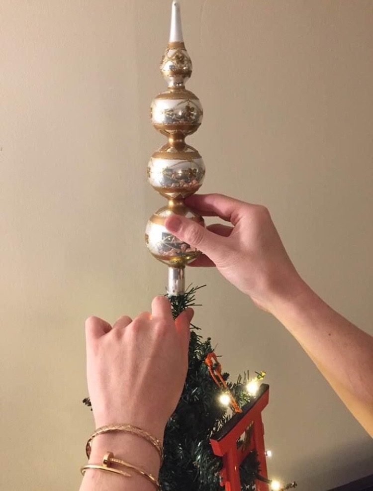 A few years ago, Lewis bought one online from Germany, and it adorns our Christmas tree. Seen below, it consists of four segments that were "silvered" and painted.