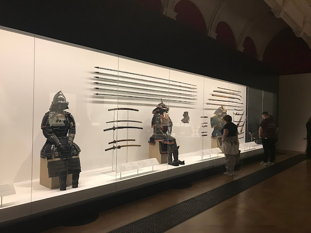 Completed in 1831, the Music Room adjoins that drawing room, and our eyes were drawn upward to admire its dome. The room is lined by 16 blue columns. Victoria and Albert loved playing the piano in it, and it has lovely views of the gardens. Johan Strauss came to the palace to perform one of his waltzes to allegedly show Victoria that it was decently okay to embrace while dancing. (Prior to that, dancing in Britain was done by holding hands but keeping a distance). When Princess Diana joined the family and got a room in the palace, she practiced her dancing in the Music Room. I'm certain that everybody admires the splendid floor: tulipwood, rosewood, satinwood, mahogany, and holly.