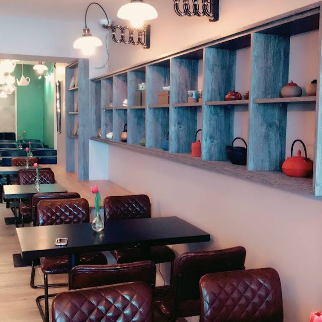 The spacious eatery had a nice variety of loose-leaf tea, and their food consisted of cakes and dumplings (sweet and savory). Lewis selected a pot of chrysanthemum tea, and I got a green tea that could've used more flavor. Since it was only 2pm, we were surprised that they were out-of-stock of half of their food. Didn't they anticipate customers in the afternoon (since they're open until 6:30)? We compromised our hunger for two platters of dumplings. Alas, they were mediocre. Making it worse, all of the paper towels were gone from the lavatories (out-of-stock on that, too), and the young female servers seemed inadequately trained. Our bill totaled €27. We don't recommend that place.