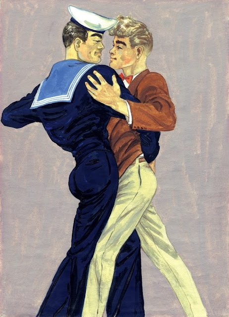 However, his nude drawings were popular in Europe. His models included bikers, sailors, laborers, uniformed soldiers, mechanics, beachgoers, and hitchhikers… and they frolicked via anonymous sex, hookups in public places, groups, bisexual experimentation, and at their jobs.